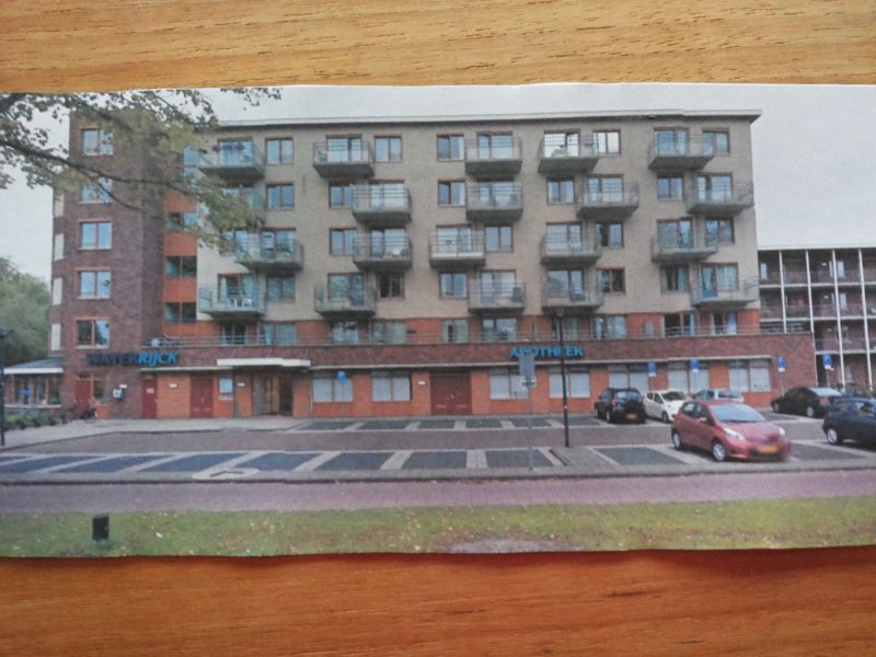 De voorkant van dit gebouw (Waterrijck) heb ik voor gekozen omdat ik er elke dag langs fiets en heb een best saai gebouw vind omdat het alleen oranje is , daarom heb ik op mijn tekening bedacht dat er gewoon een schuifdeur is naar binnen en op de muur een mooie muurschildering is en daarboven bij de huizen bloempotten hangen om toch een beetje sfeer te proefen.